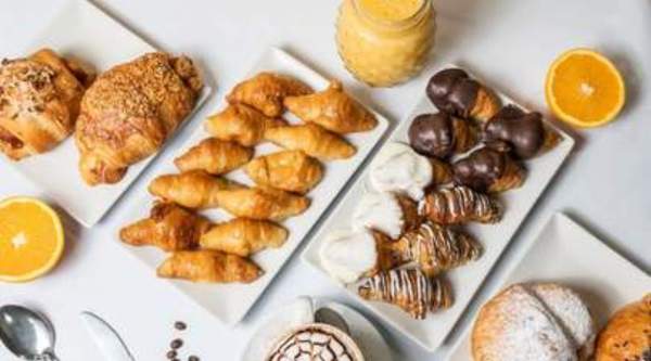 Croissant normal abierto por la mitad relleno de Queso y jamón dulce. Se caracteriza por su mezcla entre dulce y salado.