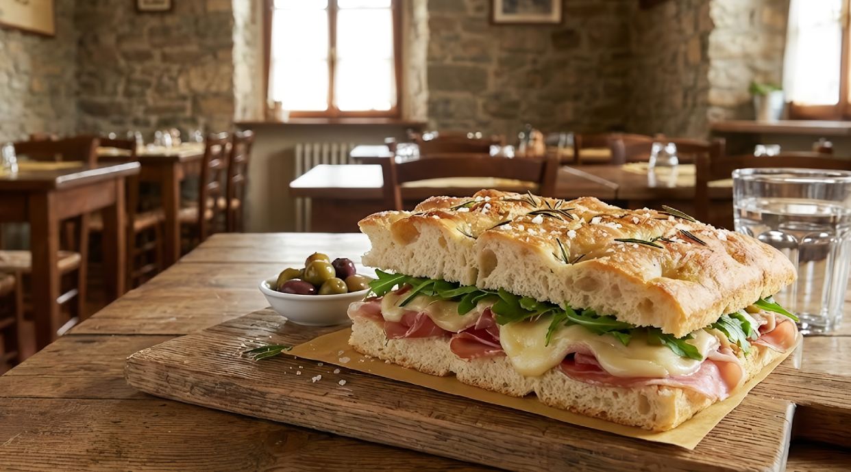 Focaccia con crema dulce de pistacho y granola de pistacho.