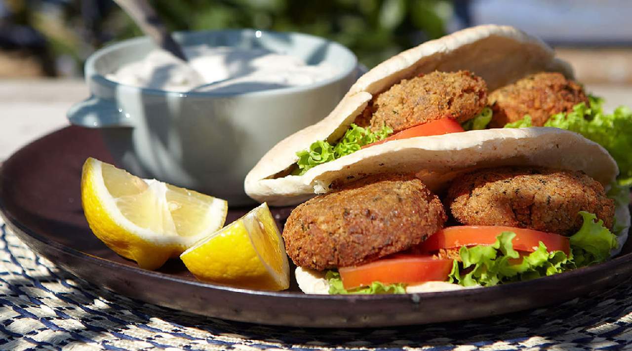 Lechuga tomate, cebolla, zanahoria, patatas y 5 unidades de falafel