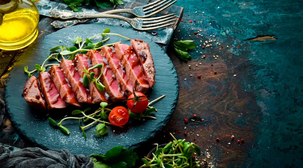 Pétalos de tomate, sashimi de atún & mayonesa japonesa