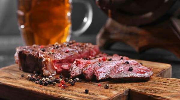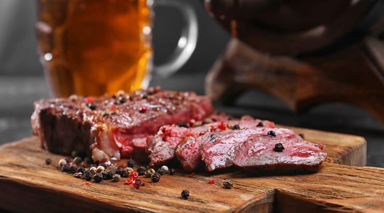 Macarrones, secreto ibérico, agua, pan y yogur de frutas