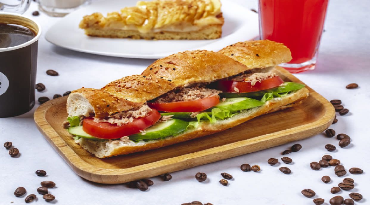 Atun,lechuga,tomate,mayonesa y huevo duro.