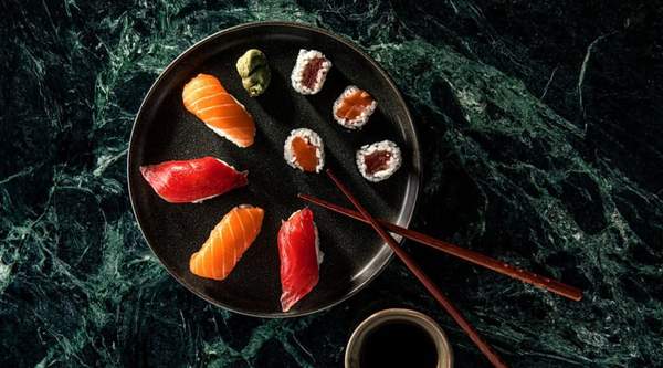 Hosomaki (3 pzs.), uramaki (4 pzs.), nigiri (2 pzs.) y sashimi (5 pzs.)