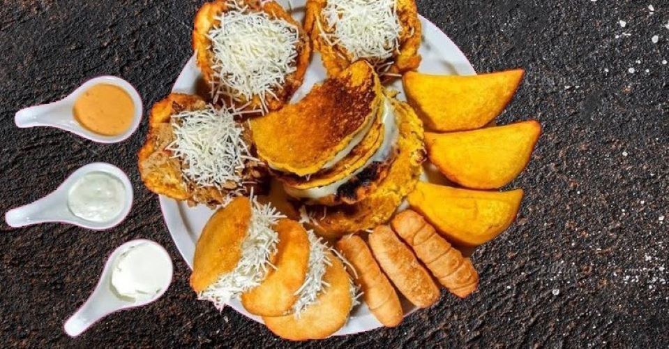 3 Tequeños, 3 mini arepas, 3 empanadas, 3 patacones, 3 cachapas y 3 salsas, para 2 a 3 personas