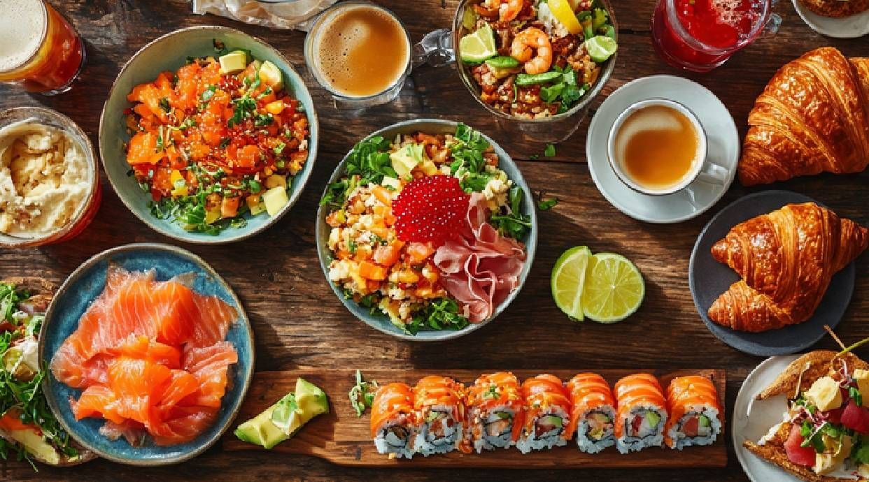 Queso crema, pepino y aguacate con pescado tierno y salsa dulce ahumada — un lujo en cada bocado.