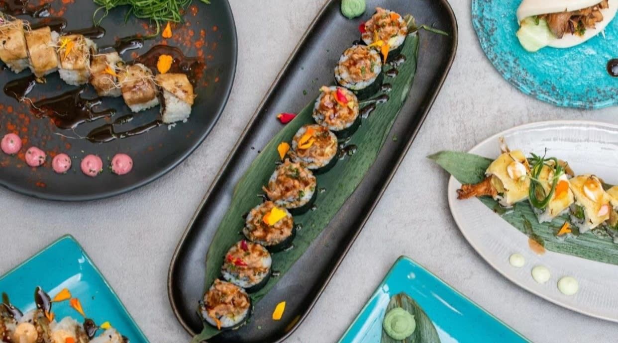 Maki aguacate (8 uds.), maki atún (8 uds.), y maki salmón (8 uds.)California de atún (8 uds.) nigiri atún (2 uds.),
