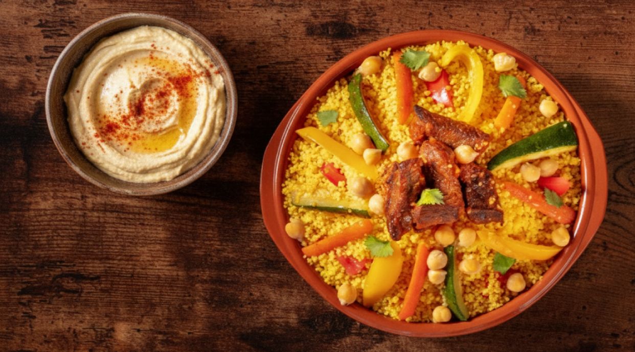 Cuscús, menta fresca, tomate y cebolla