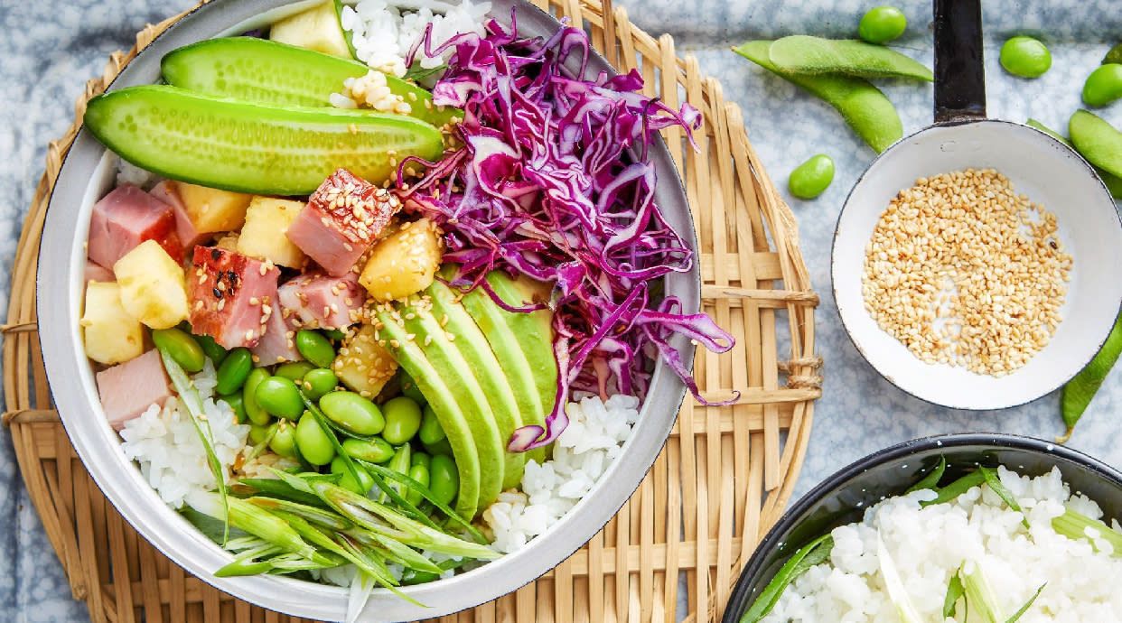 Brotes de soja,algas, zanahoria, jamón York