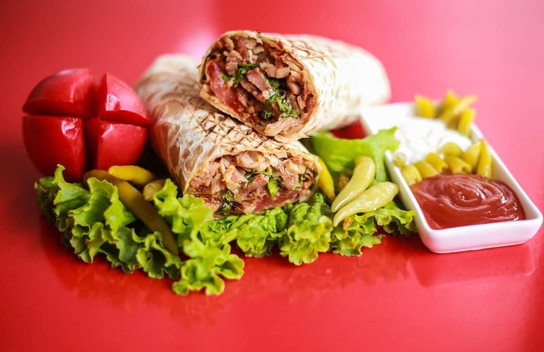 ლავაში, სალათის ფოთოლი, ხახვი, წიწაკა, კეჩუპი, მაიონეზი.