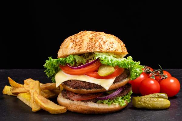 black angus, pečena paprika, kapula, cheddar, salata, panceta, umak
