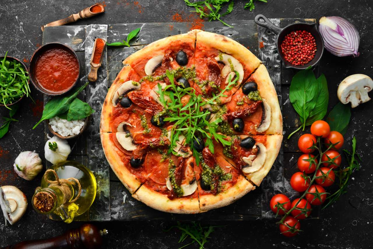 Pelati, mozzarella, gauda, miješane gljive. Slika je simbolična.