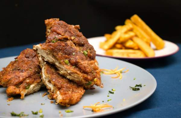 Pileća prsa, smjesa za pohanje, pomfrit. Slika je simbolična