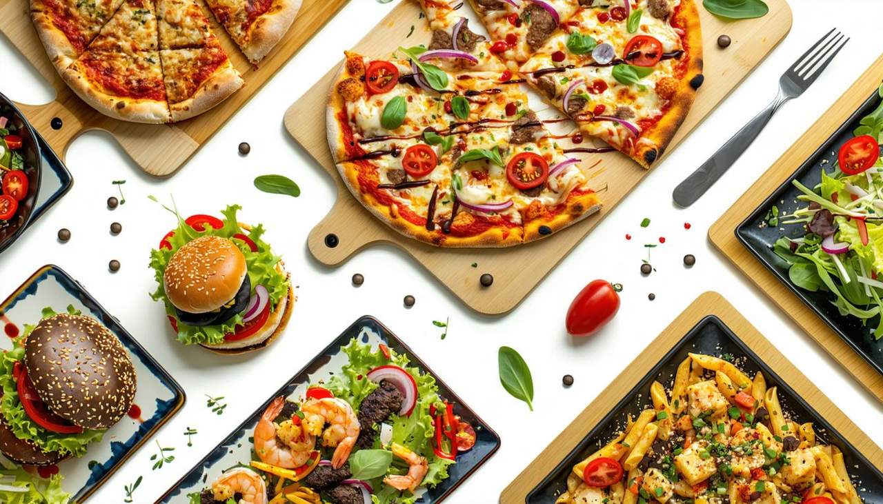 Pelat od rajčice, maslinovo ulje, sir, bosiljak, origano, šunka, gljive, masline, ljubičasti luk