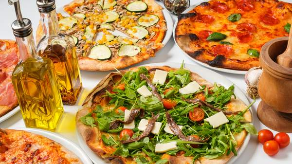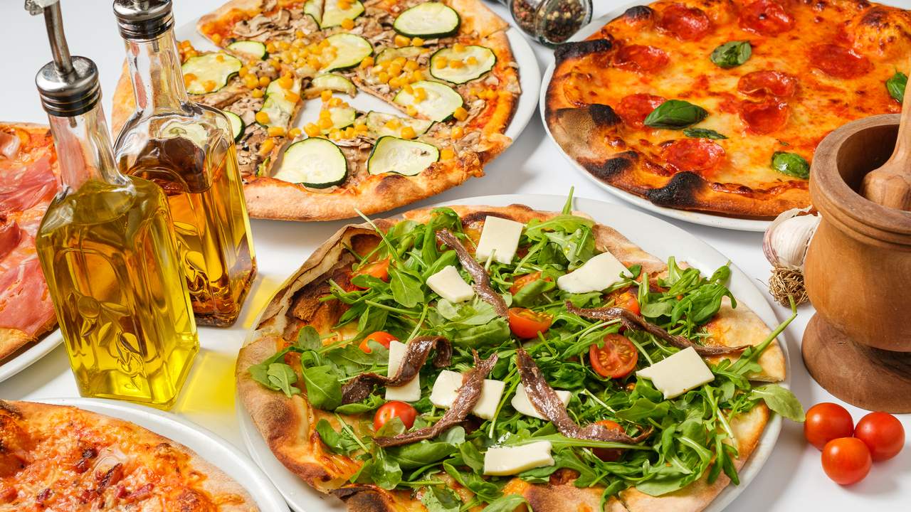 Pelati, mozzarella, sezonsko povrće, origano, masline
