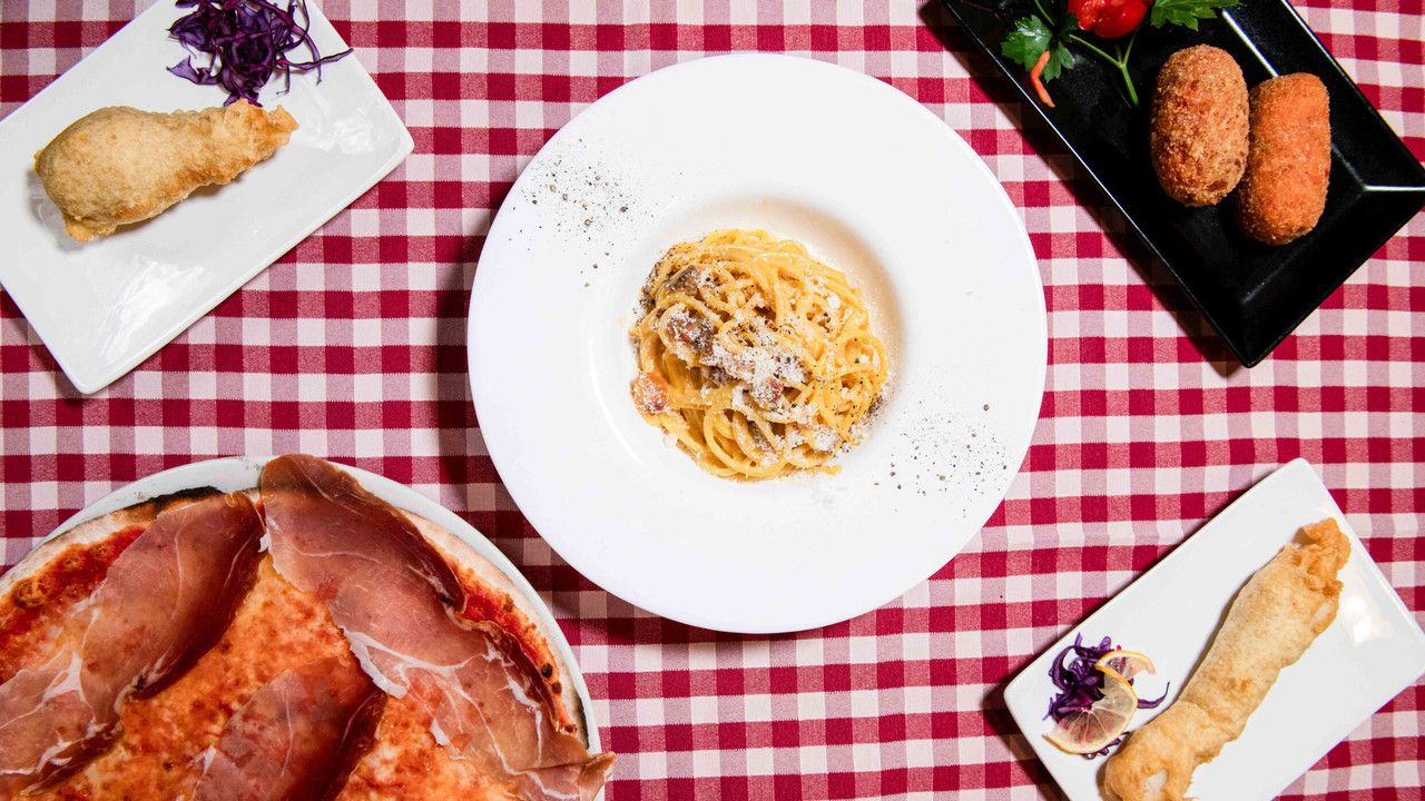 Pomodoro, mozzarella, carciofini, crudo, funghi, olive uovo - Cotta in forno a legna