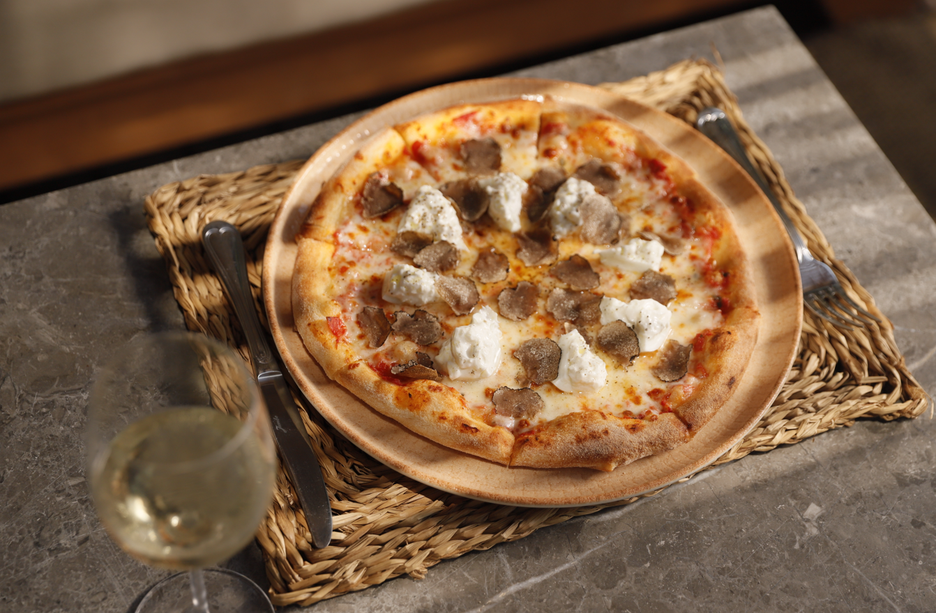 Zucca, pepe,salsiccia, provola affumicata,mozzarella