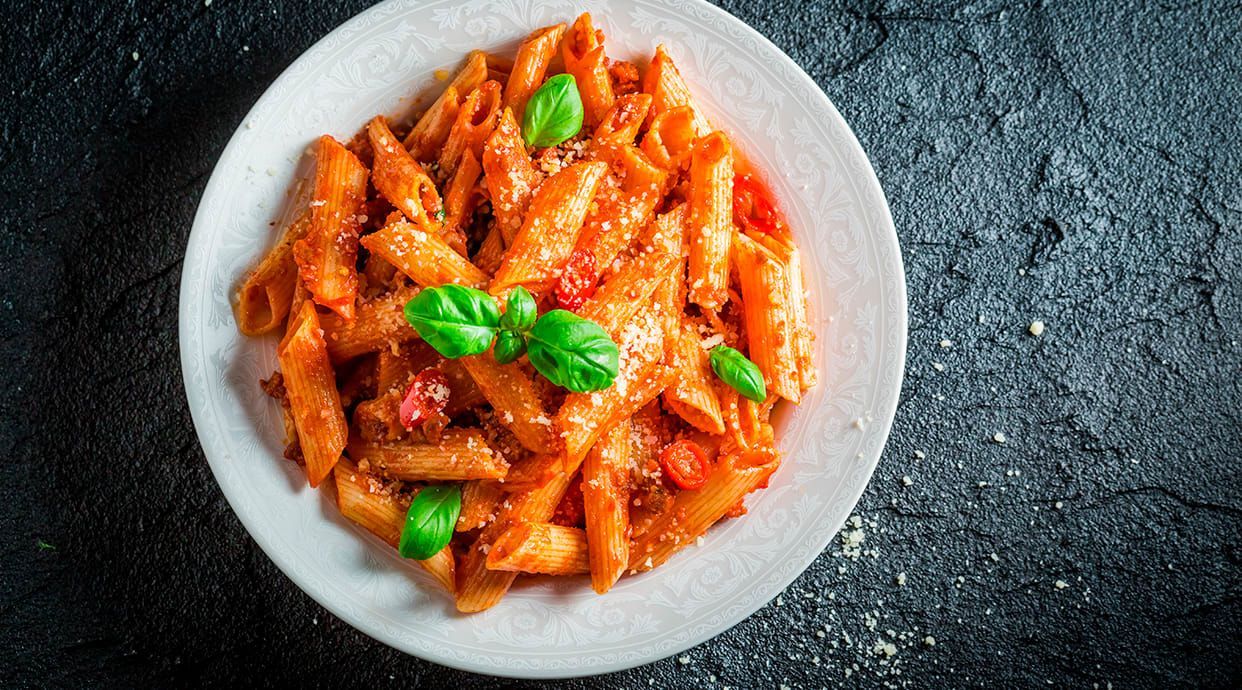 Pancetta affumicata, panna, cipolla, salsa di pomodoro, funghi champignon, olio evo