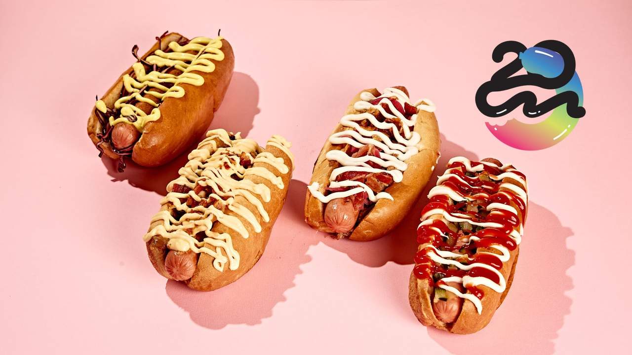 Pane morbido, wurstel di suino impanato nella polvere di curry, maionese alla curcuma e cavolo rosso condito.