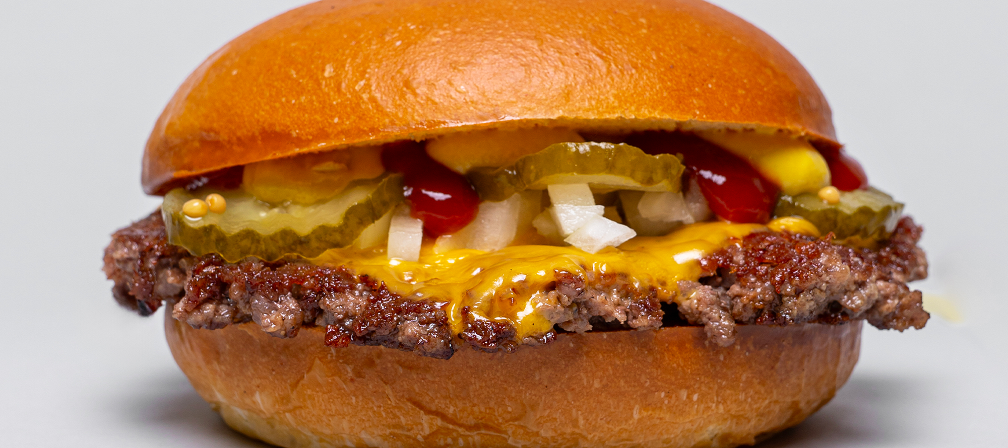 Burger di manzo, cheddar, cipolla, pickles, ketchup, yellow mustard