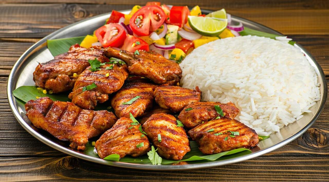 A simple, comforting meal — tender, seasoned chicken paired with fluffy, plain rice for a balanced bite