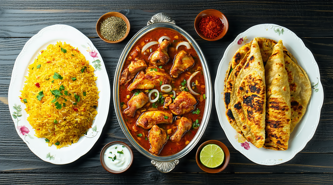Spiced rice cooked with chicken and traditional seasonings