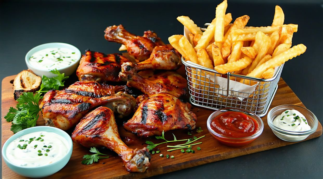 paprika chicken marinated to perfection (served with chips/rice/roasted potato/plantain)