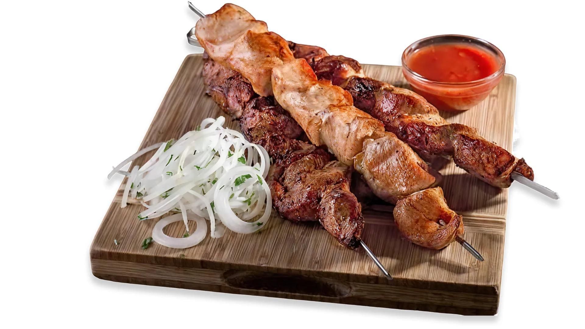 Шашылк из баранины, приготовленный на мангале. 90-100 г.