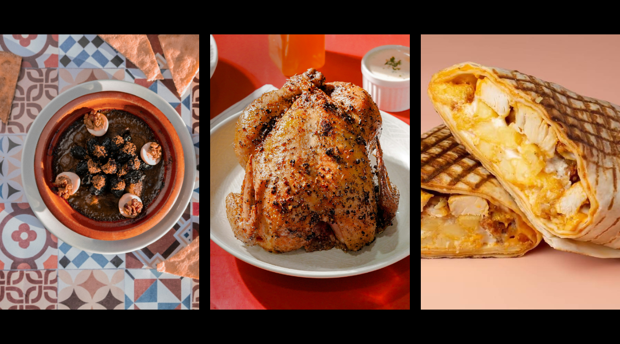 Poulet rotis complet, daghmira,salade,portion frites et 4 pièces pains