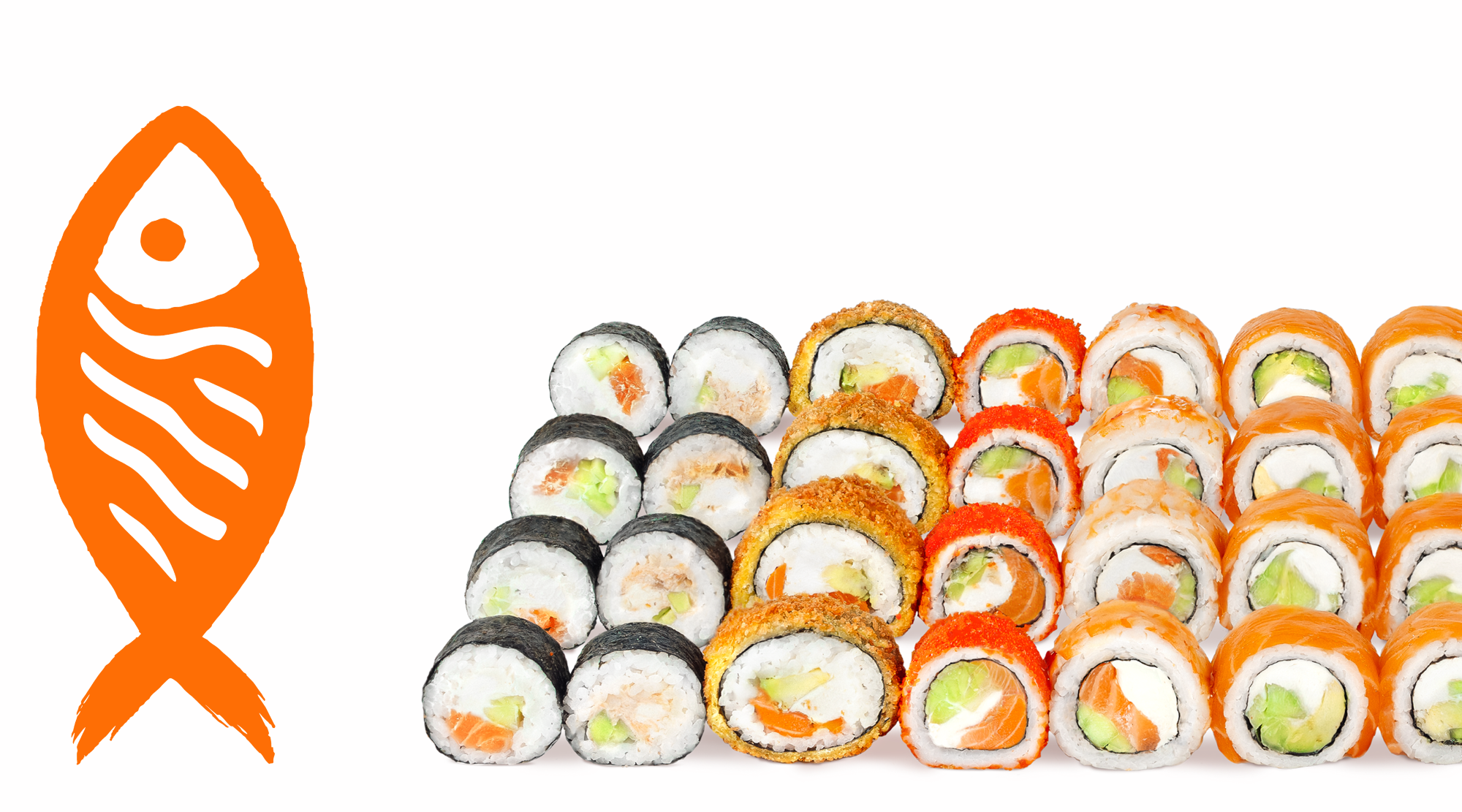 Roll Philadelphia Classic, roll Sake Tempura, roll maki Mix, roll maki mix Tempura. - 32 buc / 1300g . Ingrediente: somon, ton, crema de cașcaval, avocado, castravete, sos Spicy, nori, orez, panko, aluat, ghimbir, vasabi, sos de soia. *Alergeni: pește, lapte, ouă, soia, gluten