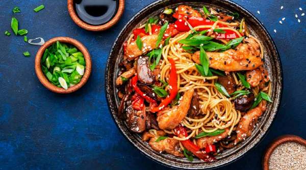 Stir Fry Spaghetti with Turkey and Plantain