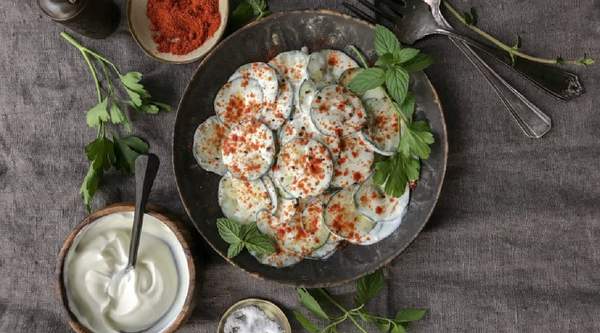 Selekcja sałat, grillowany pierś z kurczaka 200g pomidorek koktajlowy, kukurydza, papryka, sos czosnkowy. Wszystkie sałatki podajemy z pieczywkiem serowym z tortilli.
