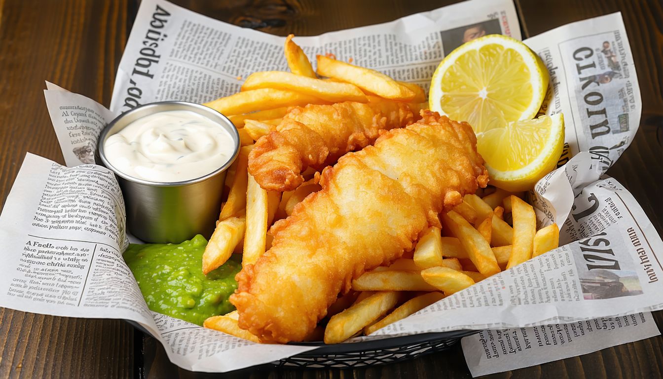 Polędwica z dorsza w chrupiącym cieście piwnym, świeżo smażona. Podawana z frytkami stekowymi, cytryną, coleslawem z czerwonej kapusty oraz jednym sosem do wyboru.
