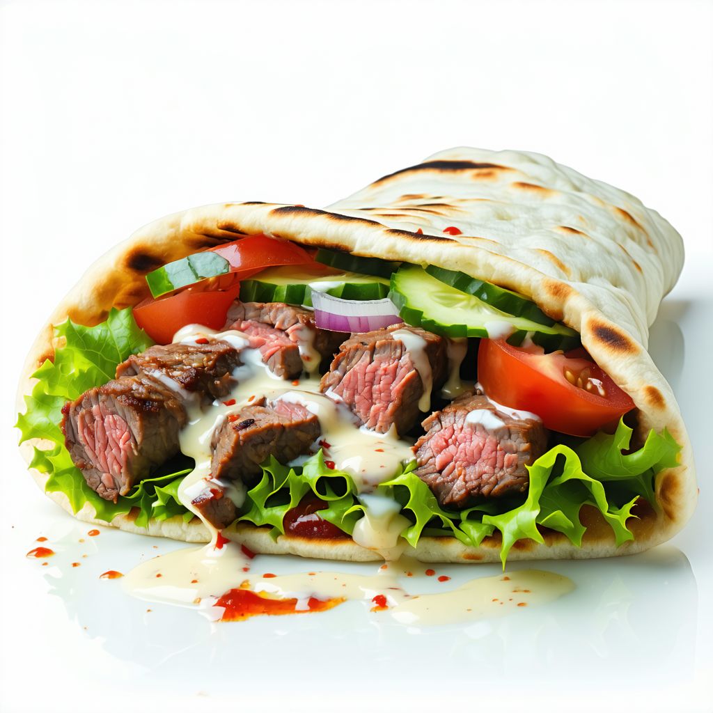 Mięso, frytki, warzywa, feta, oliwki, sos, (zdjęcie podglądowe)