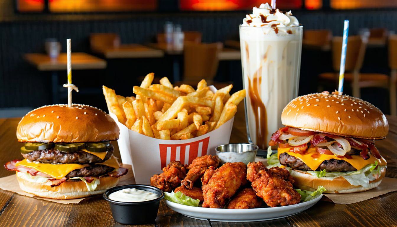 wołowina 200g, cheddar, ser panierowany, bekon, sałata, cebula, cebulka karmelizowana, sos burgerowy