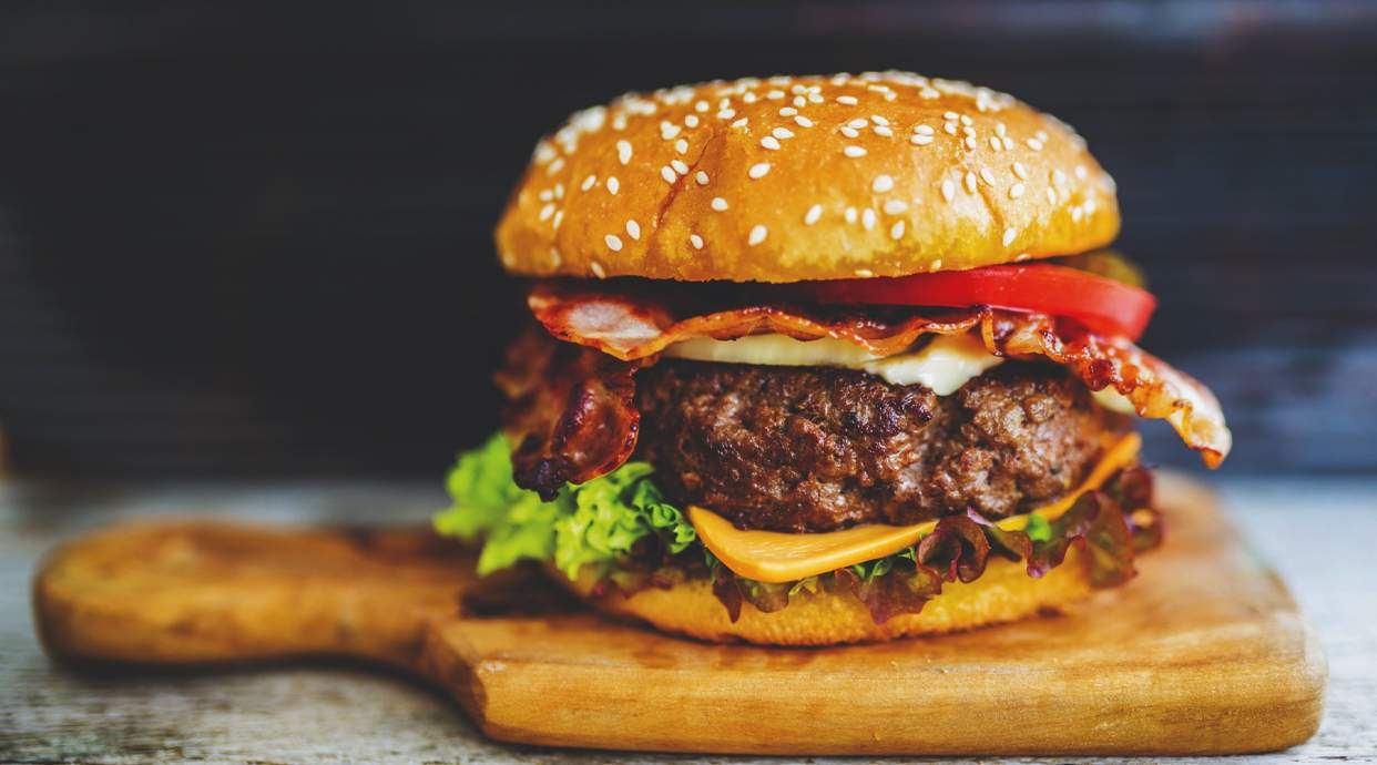 200g wołowiny , ser cheddar , sałata lodowa , pomidor , ogórek konserwowy , cebula czerwona , sos aioli , majonez