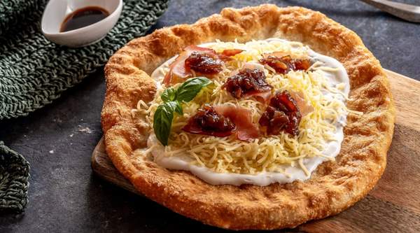 Langoș cu șuncă și cașcaval
