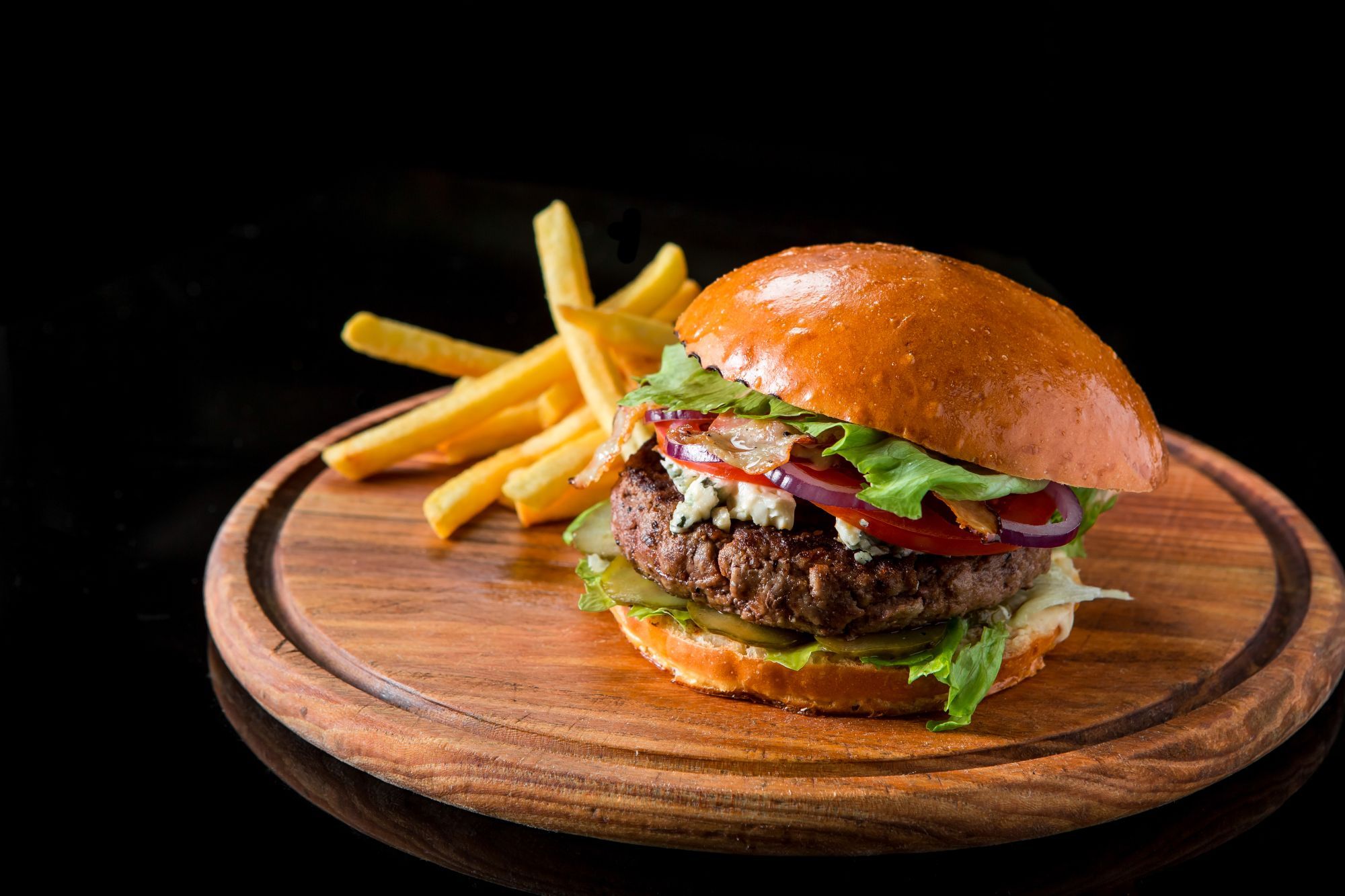 Carne de vită, chiftă, salată, cașcaval Cedar, ceapă caramelizată, bacon și sosuri - 430g