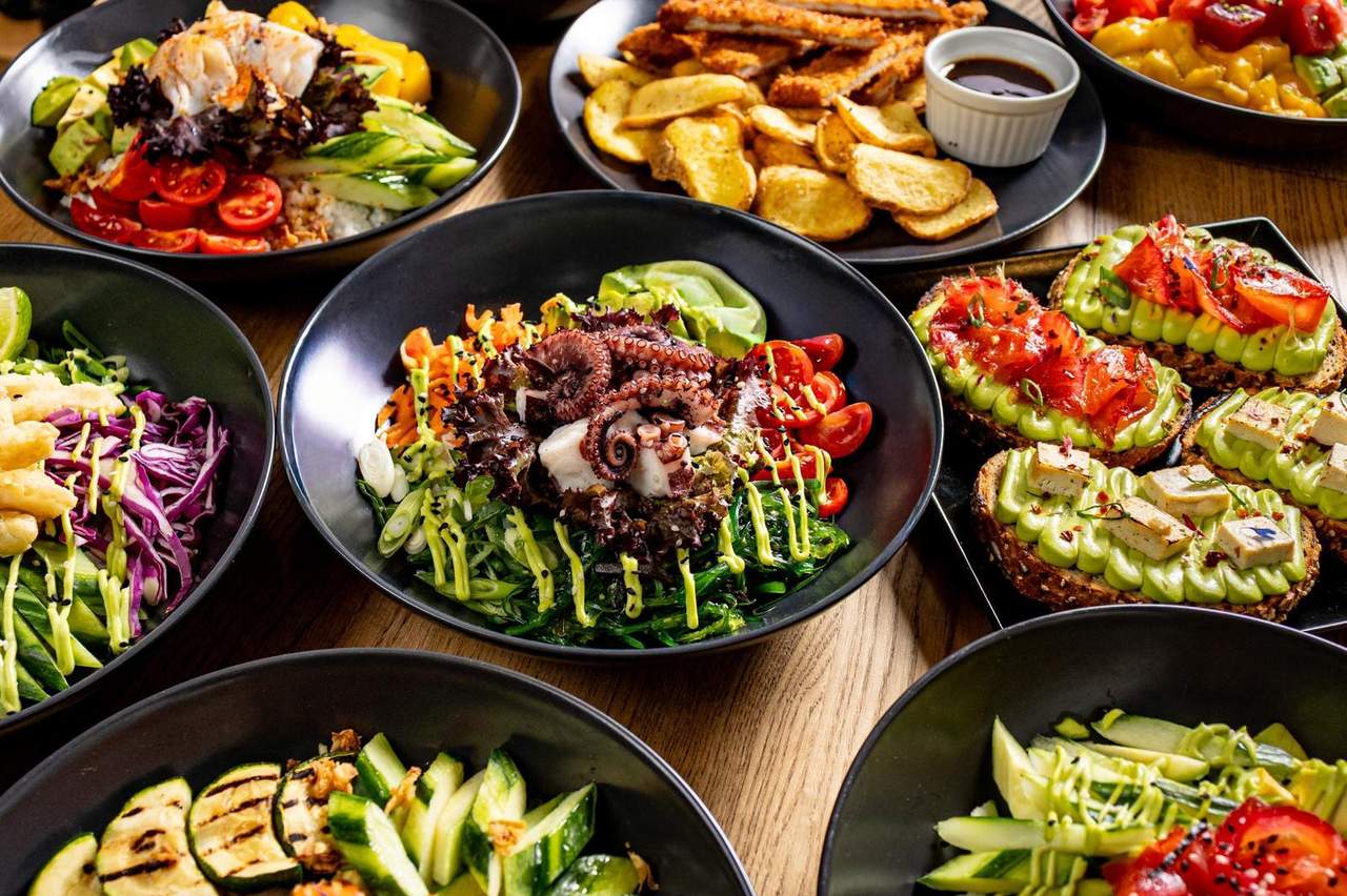 Ingrediente: Biban de mare 50 gr, roșii cherry 30 gr, castraveți 30gr, salata 15grCeapă verde 10 gr, crema de avocado 10 gr, togarashi 3 gr, suc lămâie 5 gE102, E131, ❄️ Valori nutritionale (exprimate la 100g): KJ: 201.0, Kcal: 59.5, Acizi grasi saturati: 0.35, Glucide: 3.83, Zaharuri: 1.21, Proteine: 7.67, Fibre: 1.43 Alergeni: Peste si produse derivate, Soia si produse derivate, Seminte de susan si produse derivate, Moluste si produse derivate