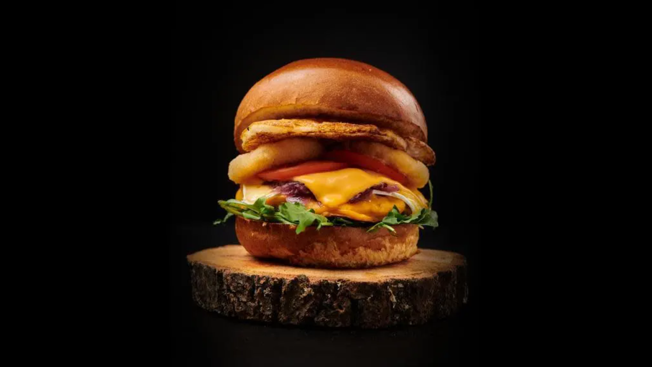 2 x vita, 2 x bacon, 2 x cheddar, roquefort, philadelphia, mozzarella pane, dulceata de ceapa, inele de ceapa, salata iceberg, rosii, castraveti - 690g