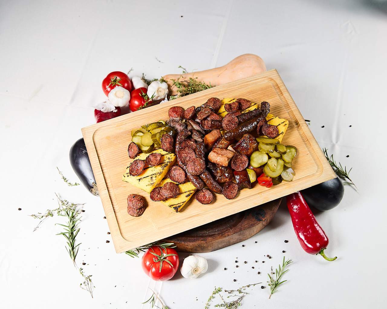 Carnati de plescoi,pastrama deberbecut,garnita,mamaliguta,muraturi, chipsuri de babic - 1000g