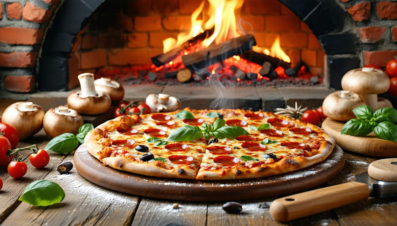 Sos de roșii, mozzarella, salam, măsline, ardei kapia