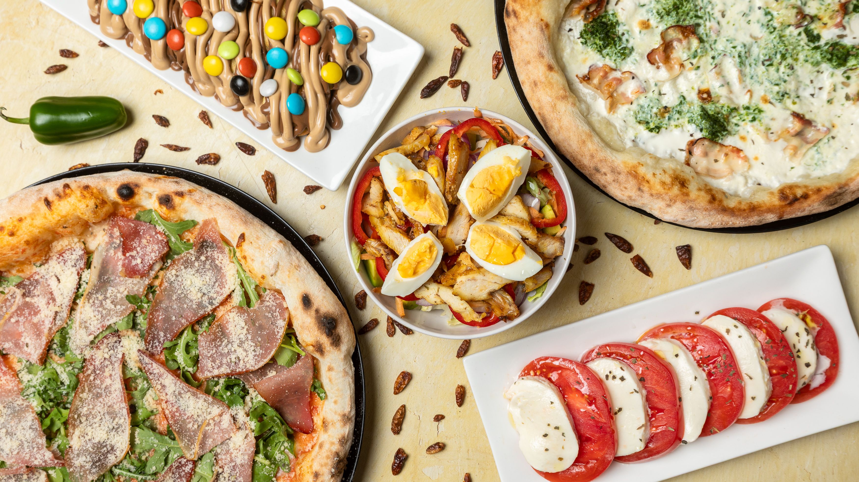 Pelat, gauda, kulen, pancetta, kukuruz, pasulj, chilly sos, bosiljak, masline