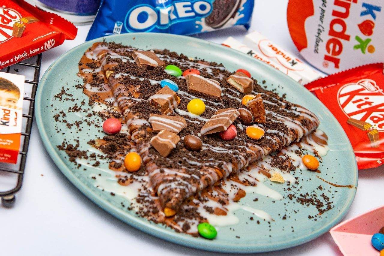 Mini pancake garnie au chocolat el mordjane+ oreo + kinder bueno