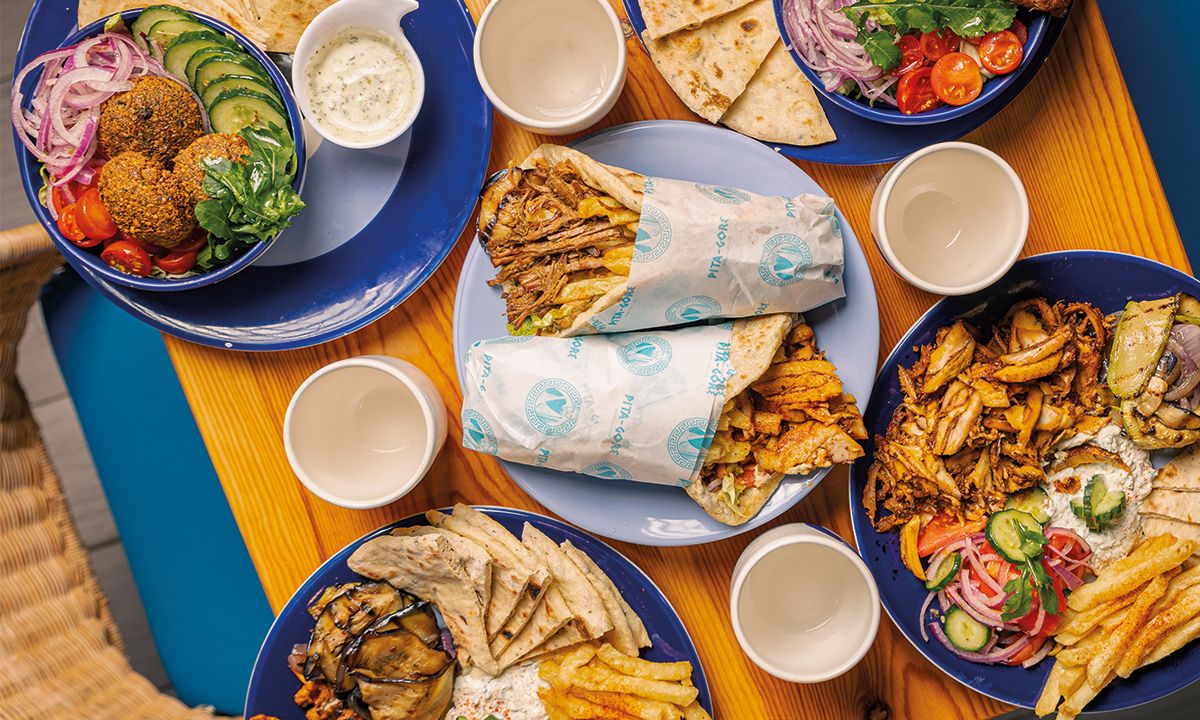 Pita, sauce tzatziki, laitue, tomates, oignons, frites maison sauce tzatziki en topping.