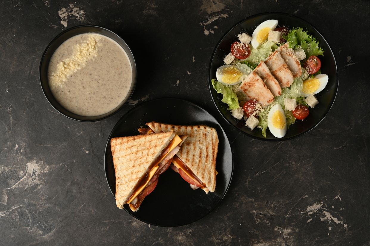 Салат "Цезар" з куркою (220г), Сендвіч "BBQ" (145г)