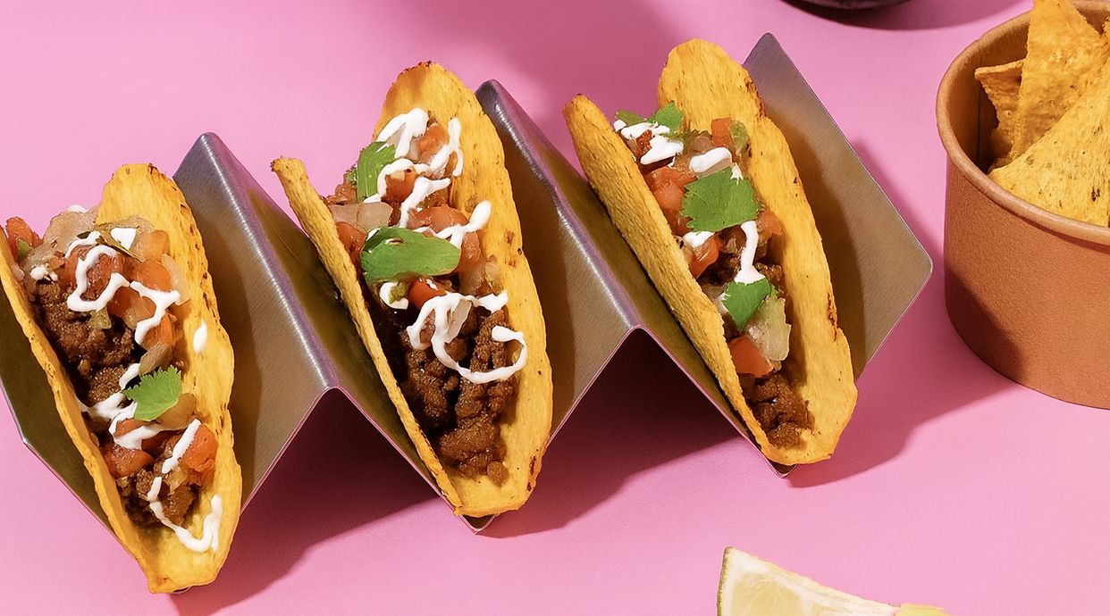Соковита м'ясо з овочами у мексиканських спеціях, подається з тортильями.