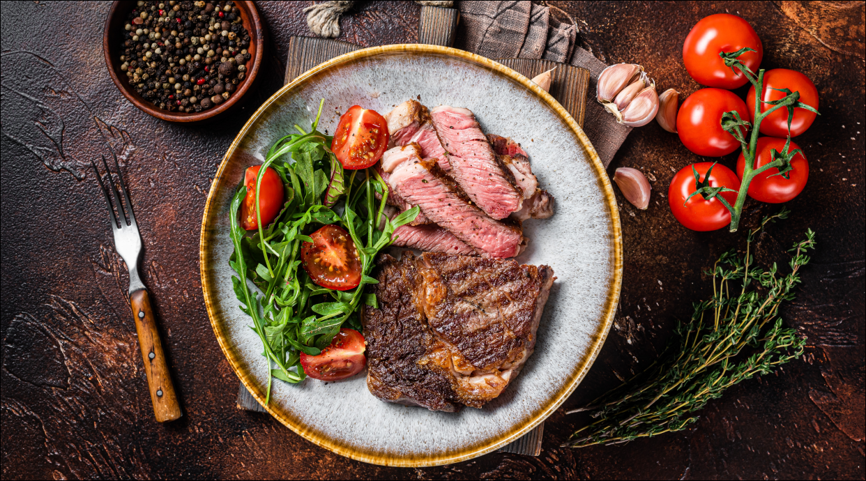 Соковитий натуральний стейк з товстого краю яловичини . Містить жир та жили. Подається з ялівцевим соусом.