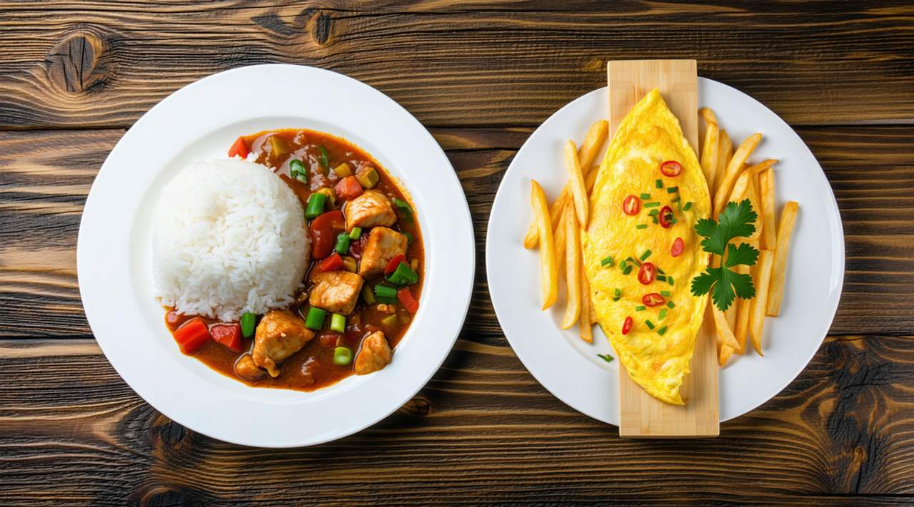Beef stew served with your choice of local food, available in two portion options