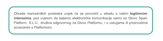 Vaša prava | Svoja prava vezana za osobne podatke možete ostvariti OVDJE, ili u bilo kojem trenutku slanjem e-poruke na: gdpr@glovoapp.com.