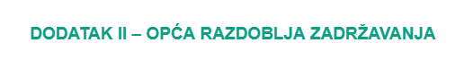 Dodatak I - Opća razdoblja zadržavanja i razdoblja zadržavanja primjenjiva na korisnike